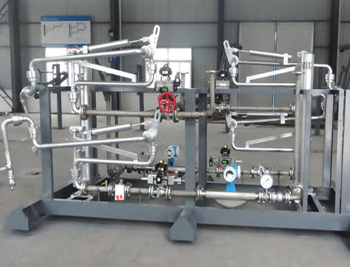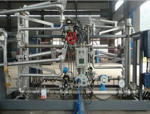 油品定量裝車橇裝組是指將每一個裝車鶴位內(nèi)的儀表和設備集成在一個專用的框架結(jié)構(gòu)內(nèi),儀表和設備包括裝車鶴管、流量計、防溢油靜電報警控制器、壓力變送器、裝車流量控制閥、緊急切斷閥,裝車泵、批量控制器等, 只預留工藝連接口和控制電源和通訊接口,這個整體集成部分稱為裝車橇。與傳統(tǒng)的裝車控制系統(tǒng)就地組裝比較,裝車橇可以節(jié)省現(xiàn)場設計和現(xiàn)場施工量,縮短項目工期,提高裝車控制系統(tǒng)的質(zhì)量。